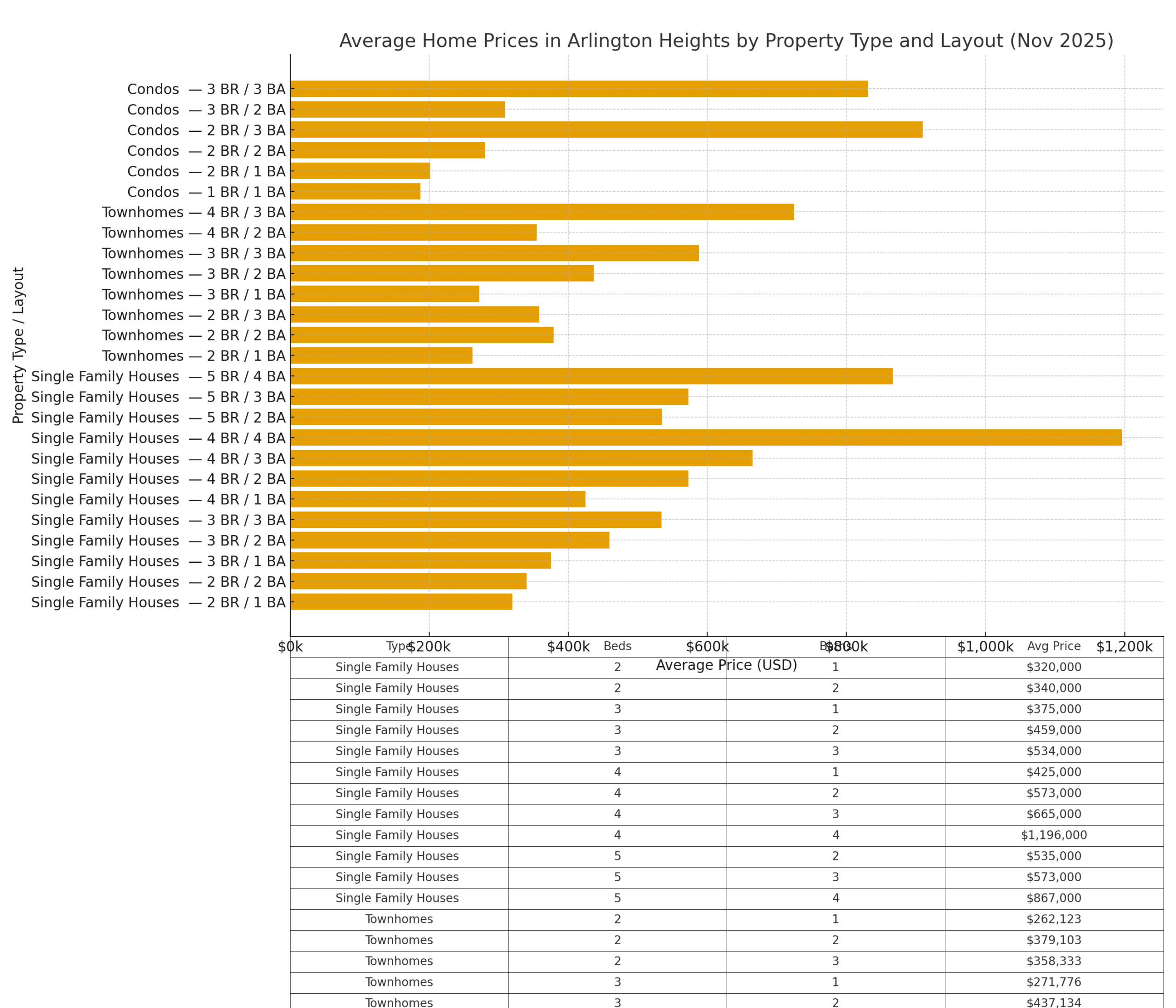 There is a full breakdown of prices in Arlington Heights based on bedroom bath count