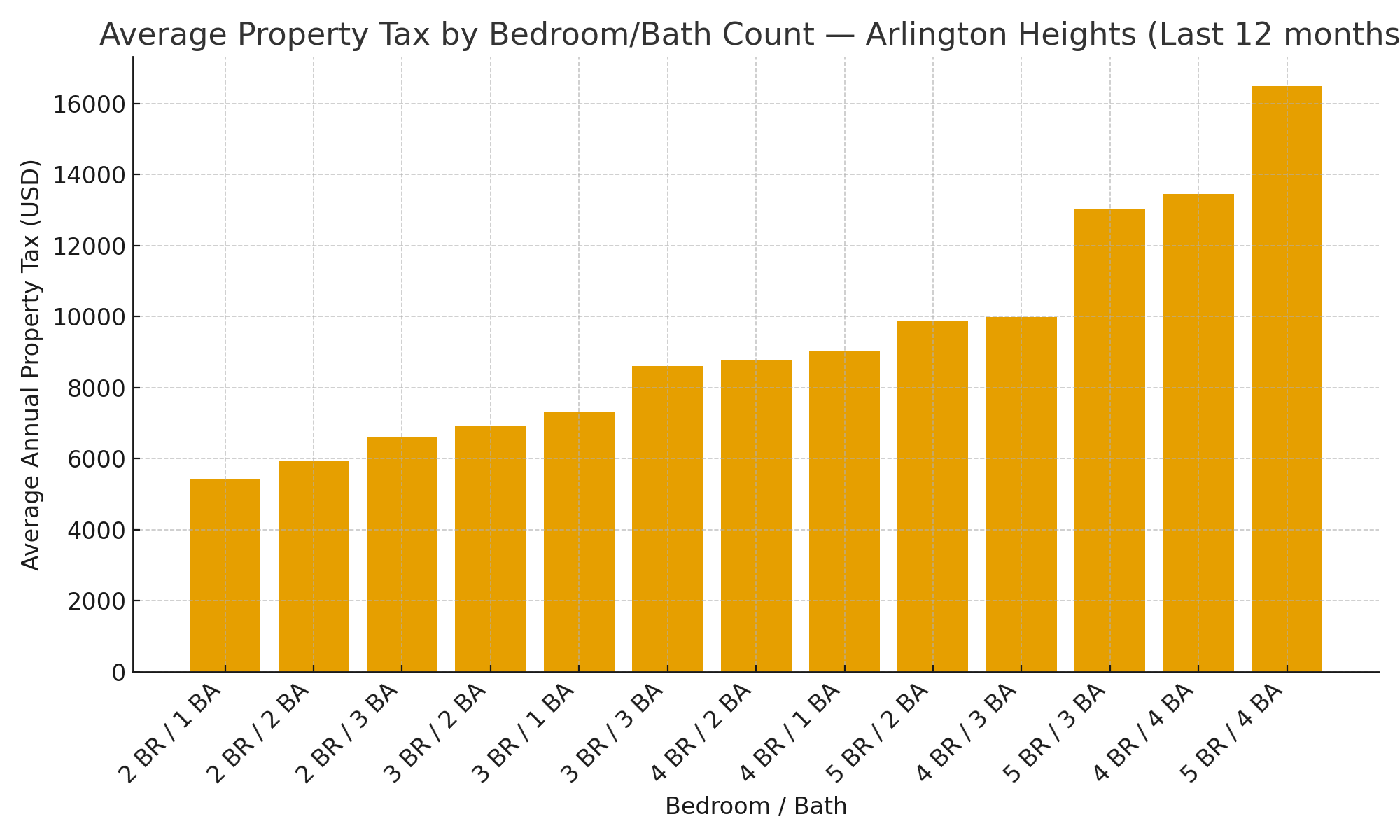 Buying a home in Arlington Heights? One of the ongoing ownership costs you’ll want to understand is property tax. Using closed sales from the last 12 months (MLS data), we calculated average annual property tax bills by bedroom and bathroom count to give you a clearer picture of typical tax expectations across home sizes.