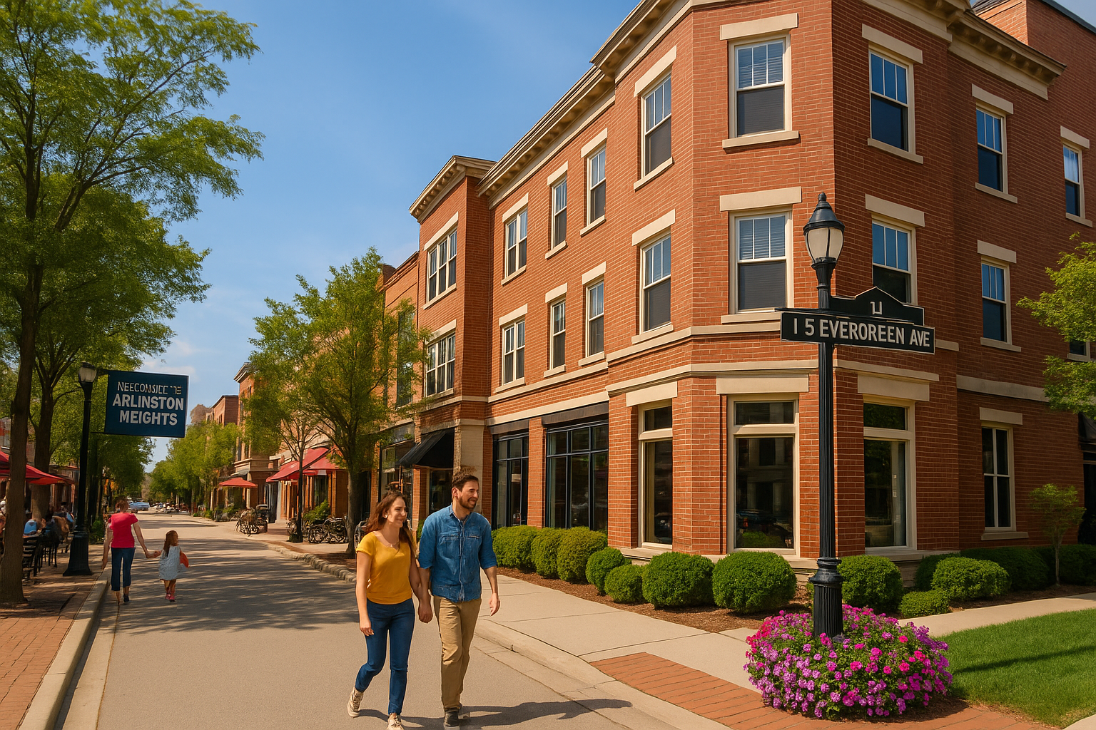 A lively view of the Arlington Heights neighborhood near 11 S Evergreen Ave, highlighting charming architecture, walkable streets, and a vibrant community atmosphere ideal for attracting home sellers.